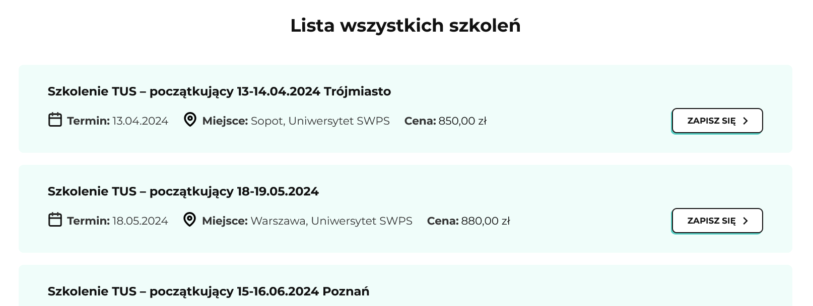 Wszystkie terminy naszych szkoleń tus znajdują się na dole strony: